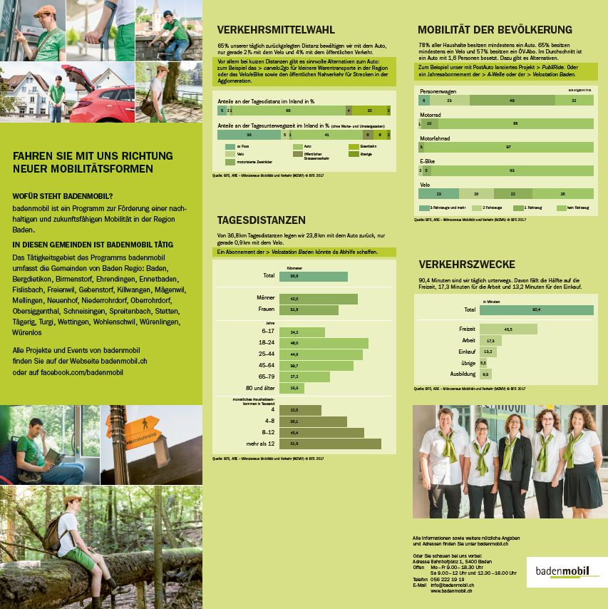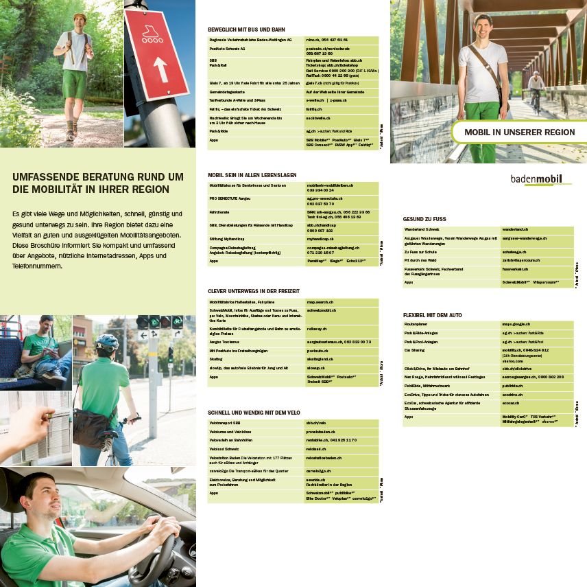 Für die Mobilitätszentrale badenmobil arbeiten wir seit 2007. Jetzt haben wir die Informationsbroschüre rundum neu gestaltet. Konzept und Idee, Umsetzung, Gestaltung und Produktionsbegleitung erfolgten in unserer Agentur in Zusammenarbeit mit unserer Kundin. Entstanden ist eine Informationsplattform mit interessanten Statistiken, Informationen zu allen Bereichen der Mobilität und vielen Tipps.