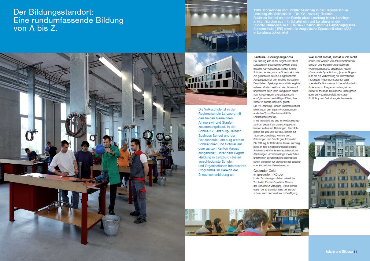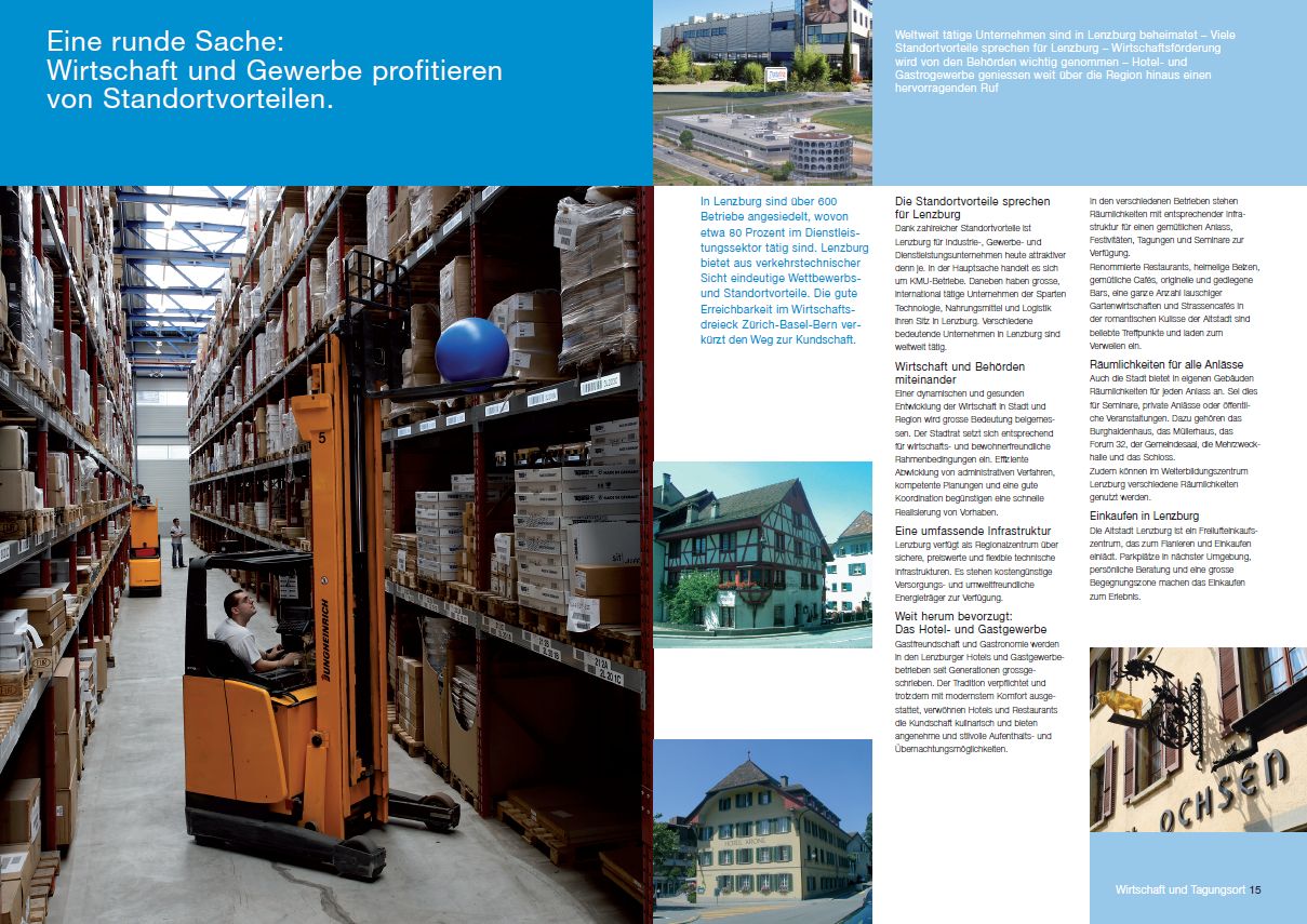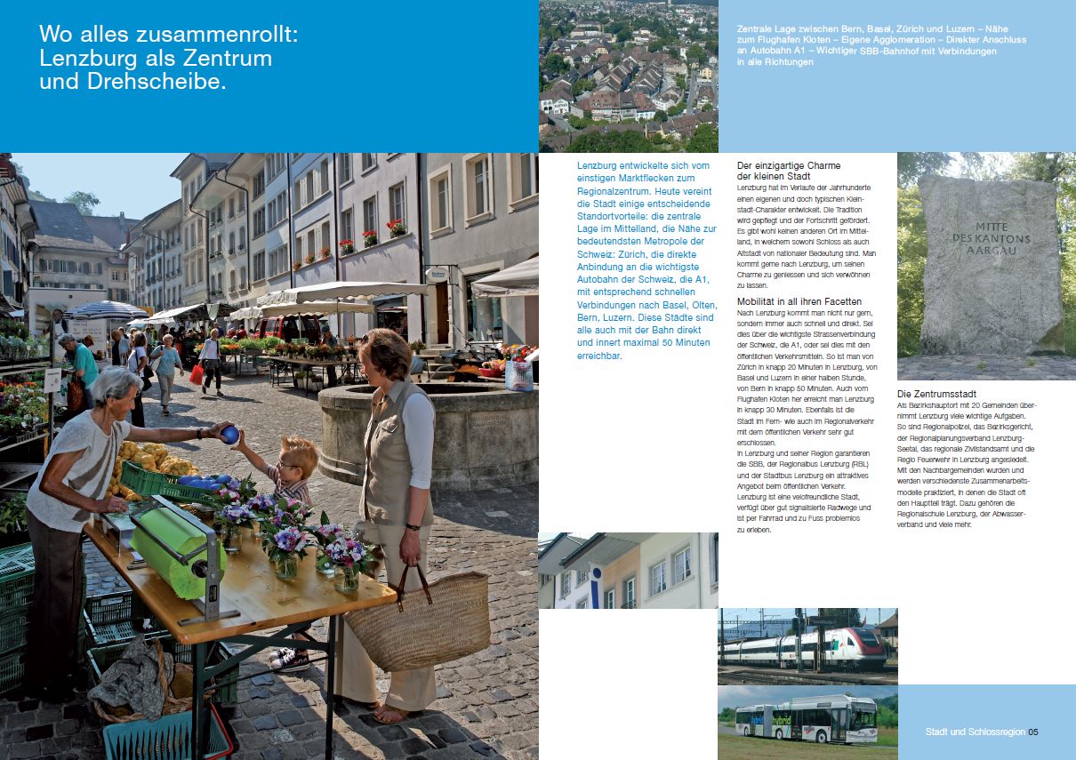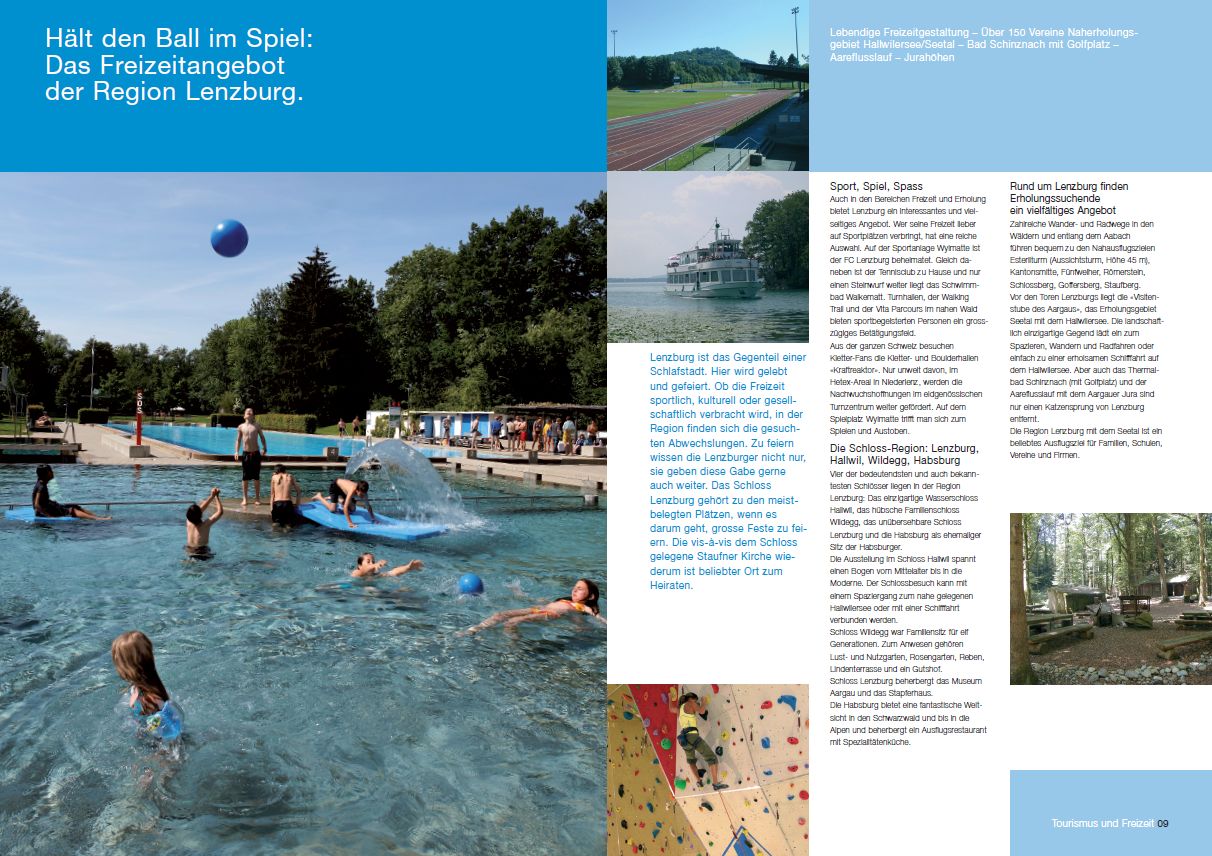 Die Idee: Das Wappen der Stadt Lenzburg ist eine blaue Kugel. Diese blaue Kugel kommt in der Broschüre auf sämtlichen Hauptbildern in irgend einer Form vor: Als Ballon, als Ball, als Globus und so weiter. Dadurch erreichen wir eine Alleinstellung für die Stadt, die unverwechselbar ist und nicht nachgeahmt werden kann.